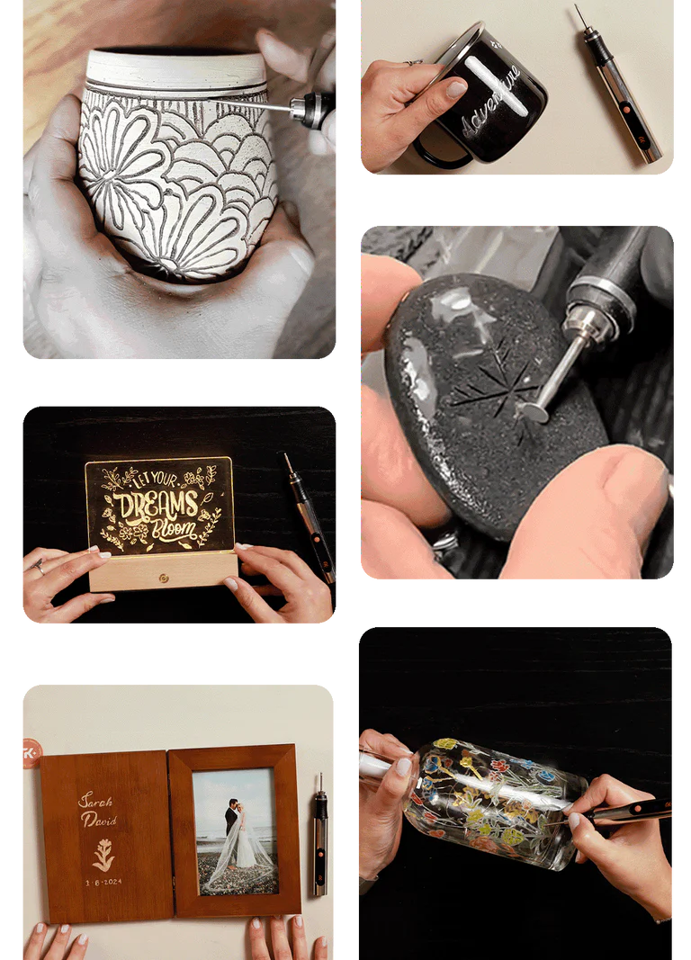 Absolutely! Signature is designed to make creativity feel natural and effortless. Whether you're just starting out or already enjoying hands-on hobbies, Signature gives you full control to engrave and personalize materials like wood, glass, metal, and stone with ease. Its lightweight, pen-like design helps you focus on the creative process rather than the tool itself, allowing you to achieve clean, beautiful results without frustration. Signature makes it simple to enjoy the process—and be proud of what you create.